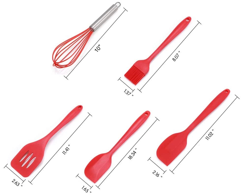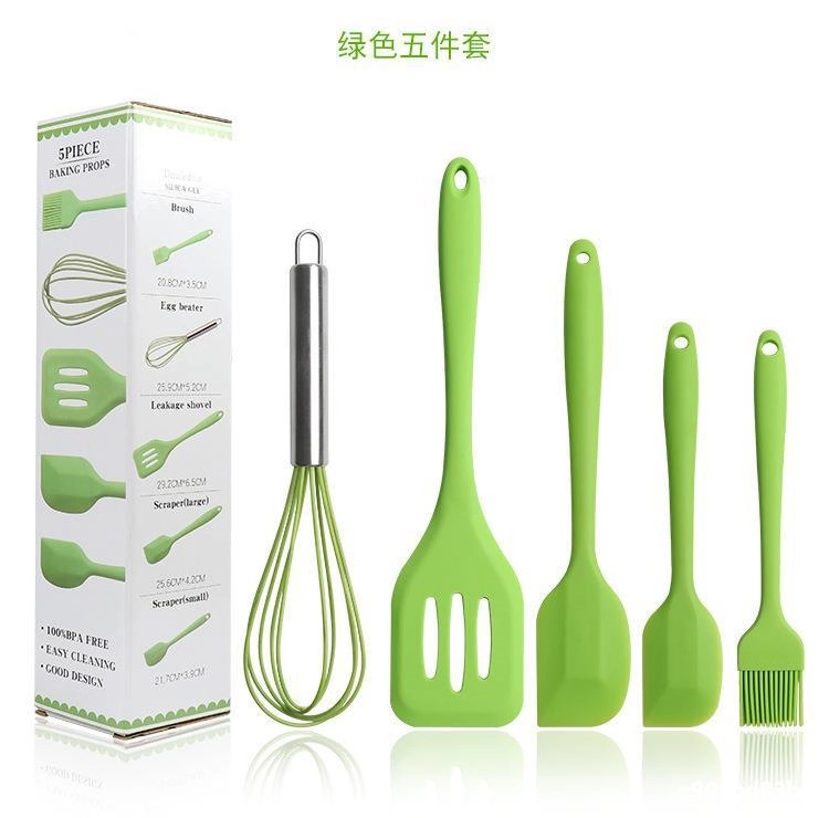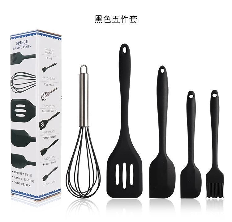 5-piece kitchen baking set with a small scraper, large scraper, leakage shovel, whisk, and brush.