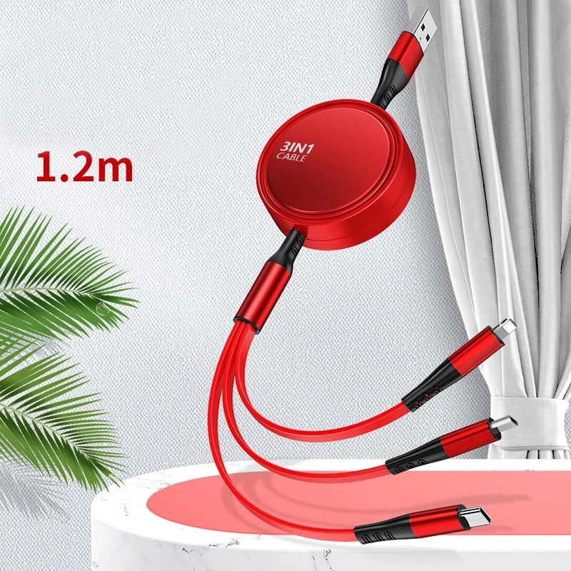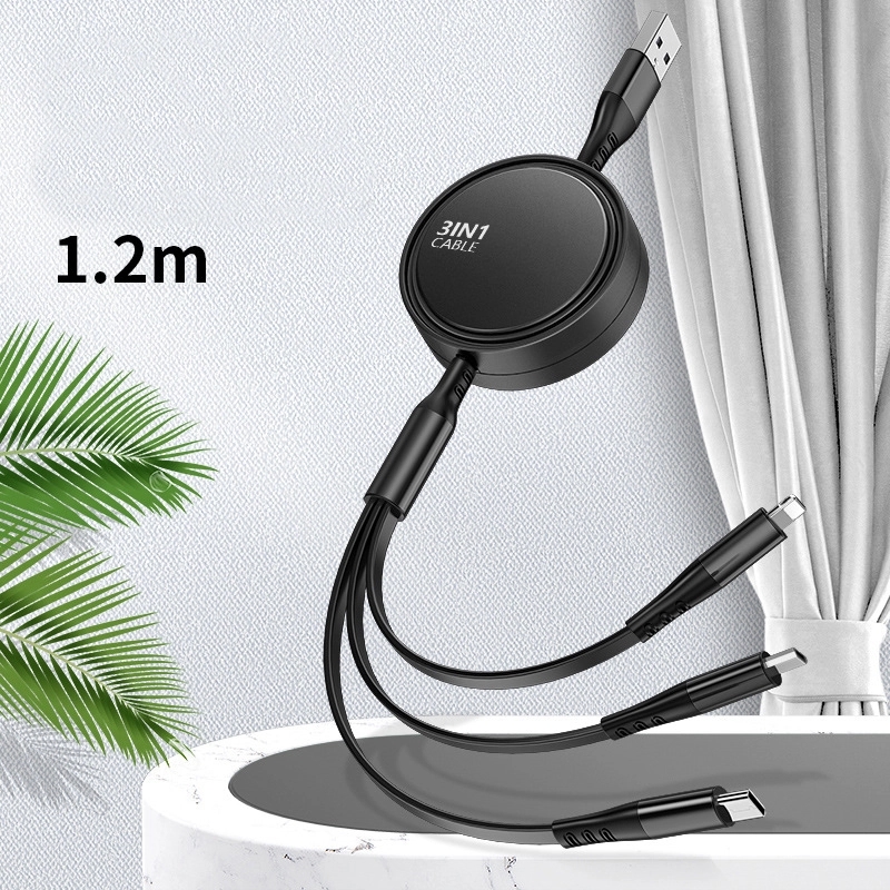 3 in 1 Retractable Charging Cables, 3A fast charge.