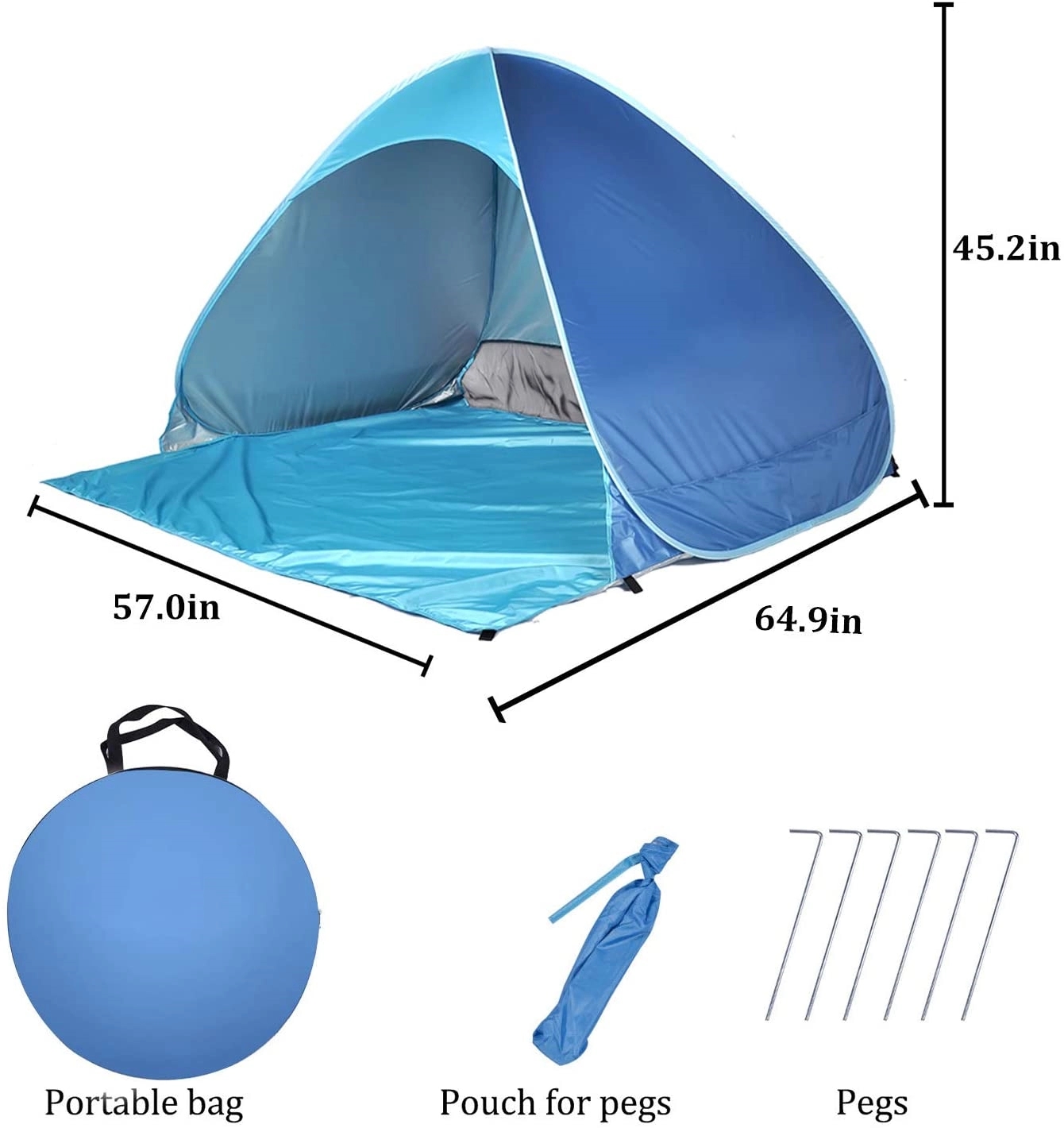 Automatic portable anti-UV sun shelter tent with four ground nails.