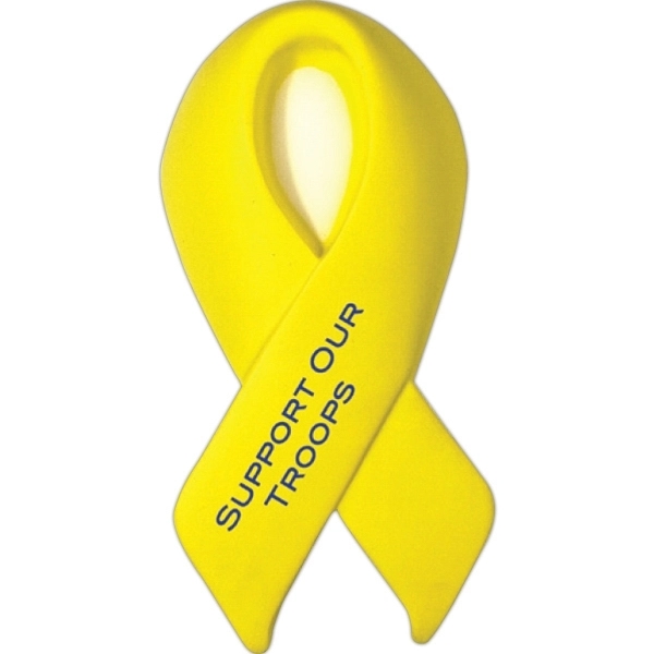 Awareness ribbon shaped stress reliever with customization and your choice of yellow or pink.