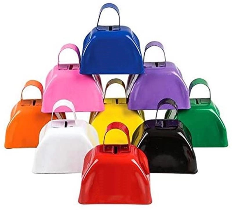 Colorful 3″ cowbell noisemaker made of metal with a handle for cheering on your team.