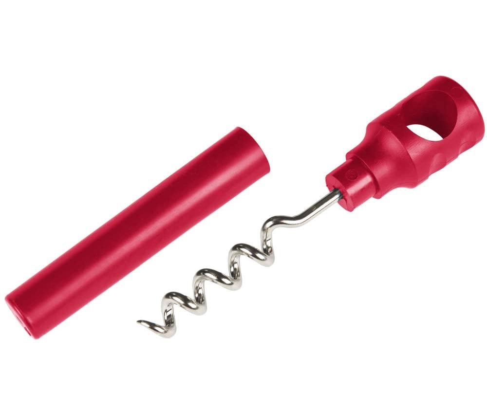 Plastic, two-piece pocket corkscrew in a compact design that slides into any pocket.
