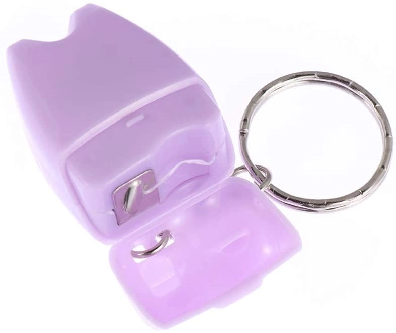 Dental floss keychain with 16 1/2 yards of mint-flavored floss.