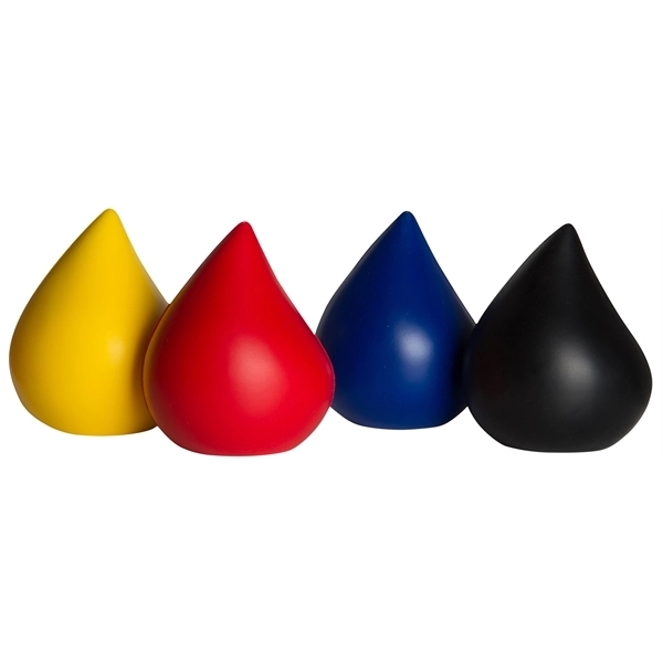 water droplet shaped stress reliever; offered in an assortment of colors and includes customization.