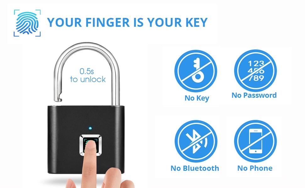 Fingerprint smart lock padlock uses fingerprint recognition to lock and unlock.