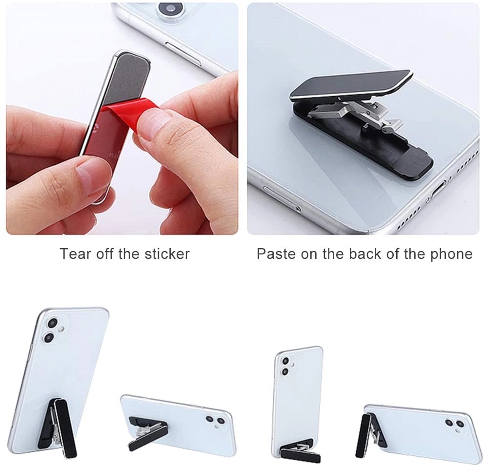 Foldable phone adhesive holder compatible with all sizes of smartphones and tablets.