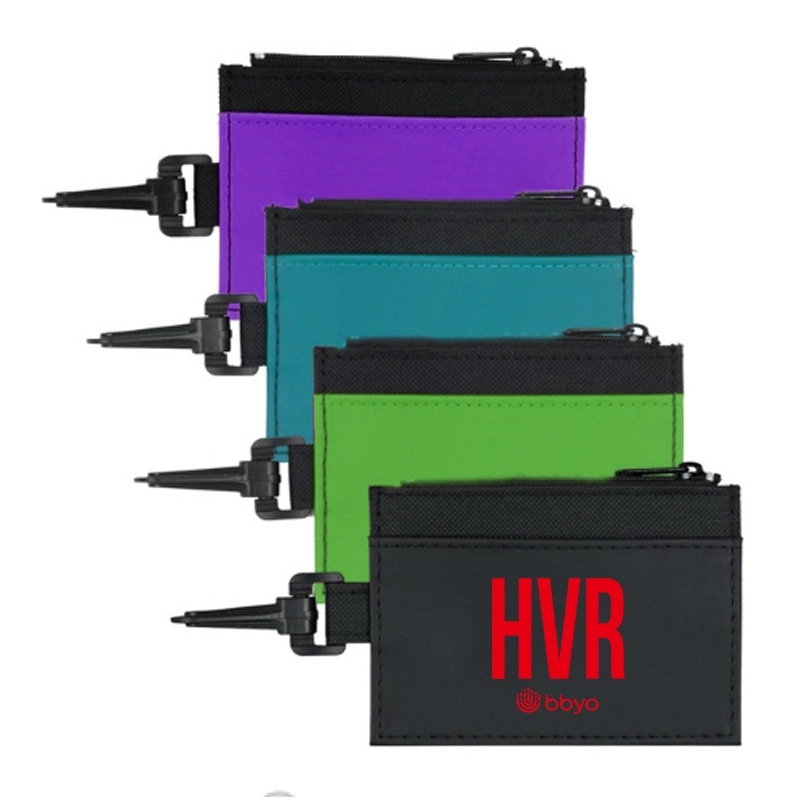 Make your business more recognizable with this ID holder! It features a plastic carabiner and comes with a zipper wallet with a split ring on the inside. This securely holds keys, money and other valuables. The back side has a clear vinyl slip in pocket for storing ID. Use the clip to attach to a bag to ensure it goes with you everywhere. Add your company name or logo for maximum visibility. What a great way to get more people on board with your brand!