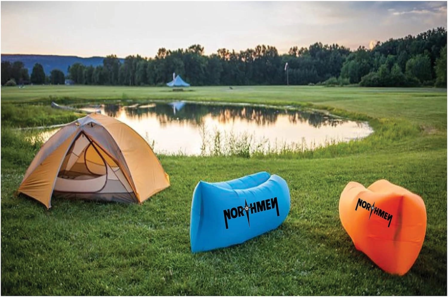 Inflatable air sofa made of quality 190T polyester with PE lining and an included drawstring bag.