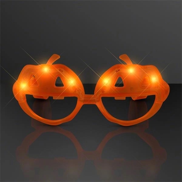 Give them an easy way to look festive while standing out in the crowd with the cool look of these pumpkin-shaped light-up flashing sunglasses. They feature 10 cool LED colors and come in a one-size-fits-most design that makes gifting at a variety of events easy. Enjoy three LED functions: quick flash, slow flash and steady. Three replaceable AG13 batteries come included and the product is CPSIA compliant for your total peace of mind. This product is not suitable for children under 5 years of age. WARNING: This product can expose you to Bisphenol, a chemical known to the State of California to cause reproductive harm. Blank or imprinted.