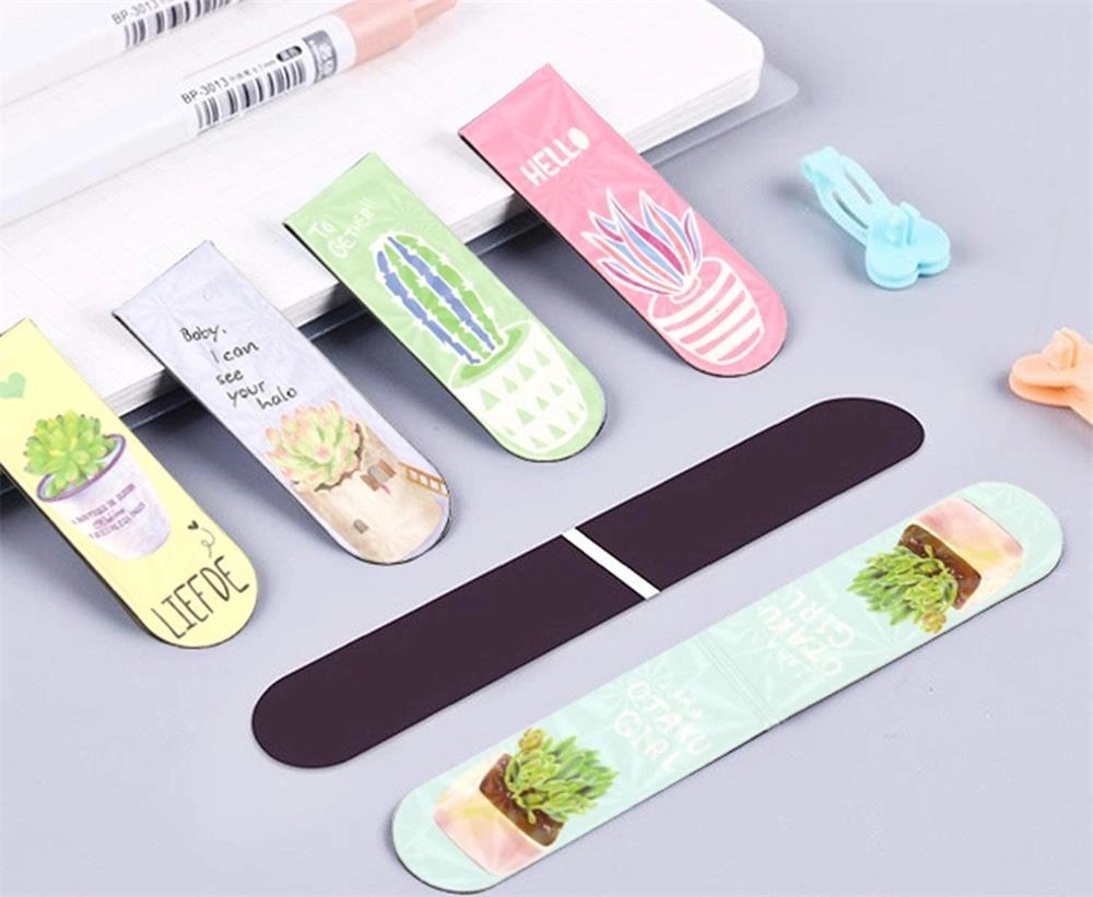 Bookmark made of paper and magnetic material that is durable and fade resistant.