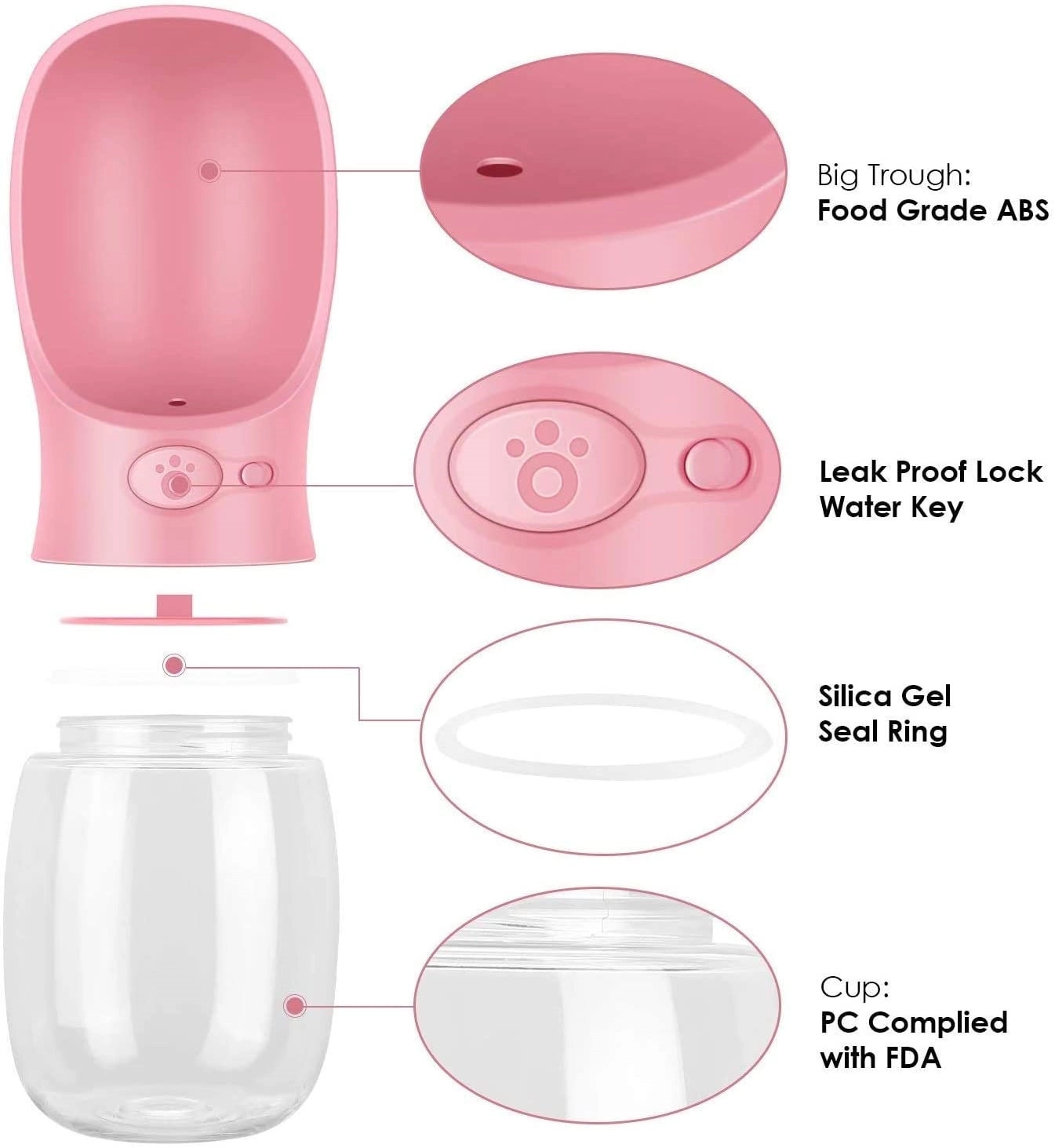 Grow your audience and the strength of your business with this pet travel water bottle! It's made of high-quality food-grade ABS material that's both lead free and BPA free. It has a 12 oz. capacity and is great for walking, hiking and travelling with you dog or cat. This features a one-key lock and sealing rubber ring to avoid water leaking in your bag. Customize with an imprint of your company name or logo before your next event. Give this out and get more exposure for your brand!