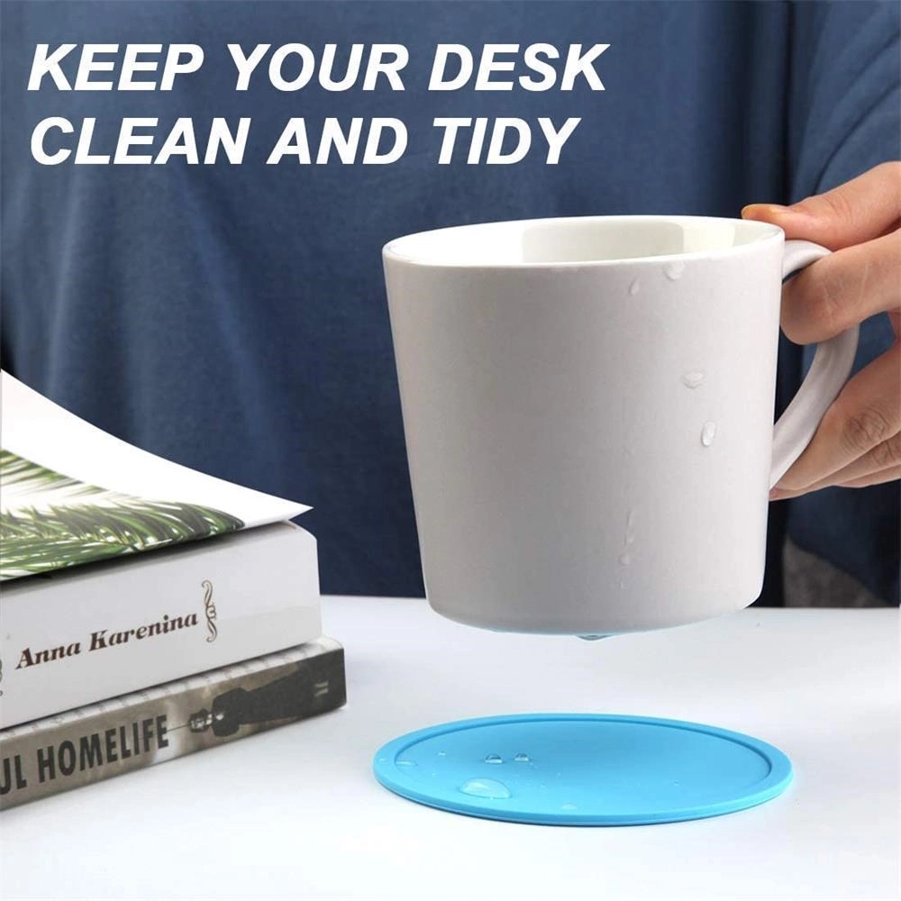 Coaster made of silicone for protecting tabletops from scratches and spills.