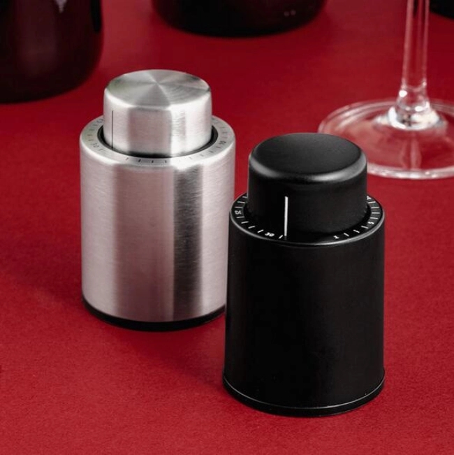 Grow your audience and the strength of your business with this wine stopper! It's made of silicone and stainless steel, measures 2 3/4" x 1 3/4", and comes in black or silver. This is great for keeping your wine fresh for up to 10 days. Just place this vacuum sealer into the top of the bottle and press until you feel the resistance. This can also record the time you last opened it. Simply turn the dial to point the time you want. It is just a record and won't count down. It's perfect for handing out at the next tradeshow or conference. Add your company name or logo for maximum visibility. Give this out and get more exposure for your brand!
